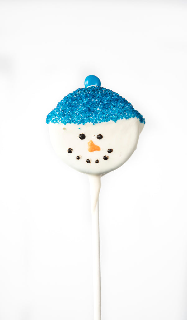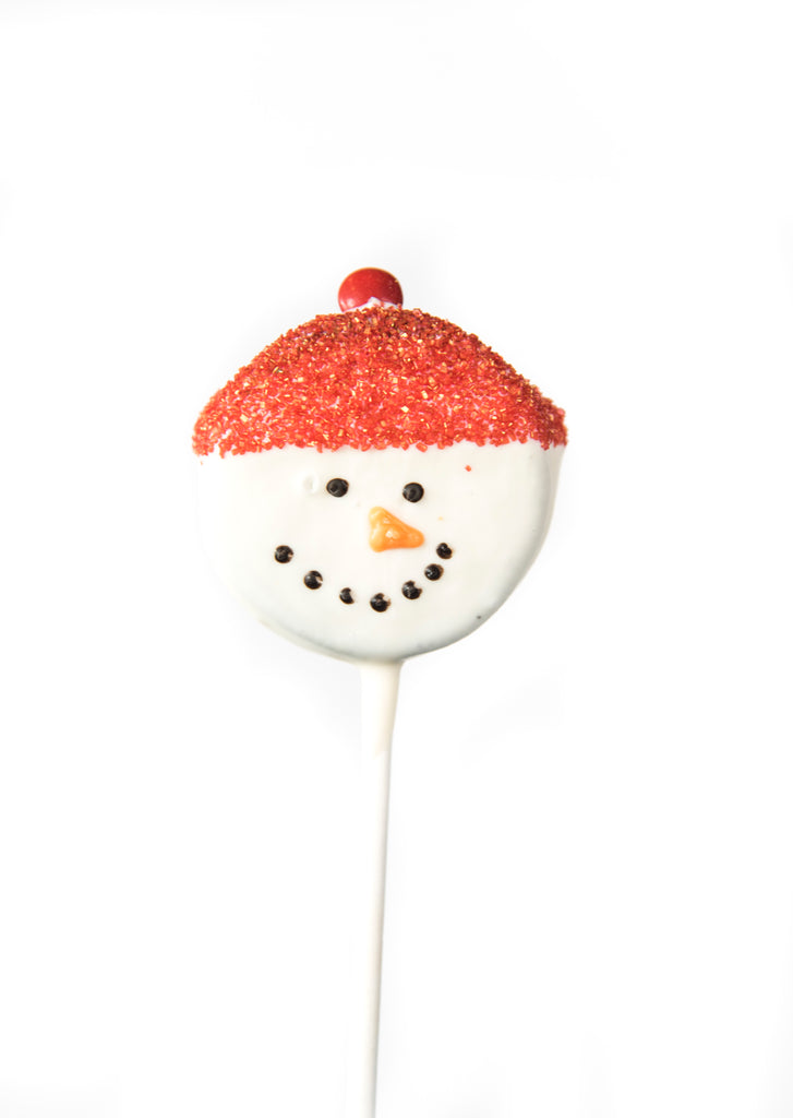 Our hand-dipped cookie sandwich pop is adorable with Frosty's face and hat! Dipped in white chocolate and hand decorated you'll want to buy them for everyone on your list!