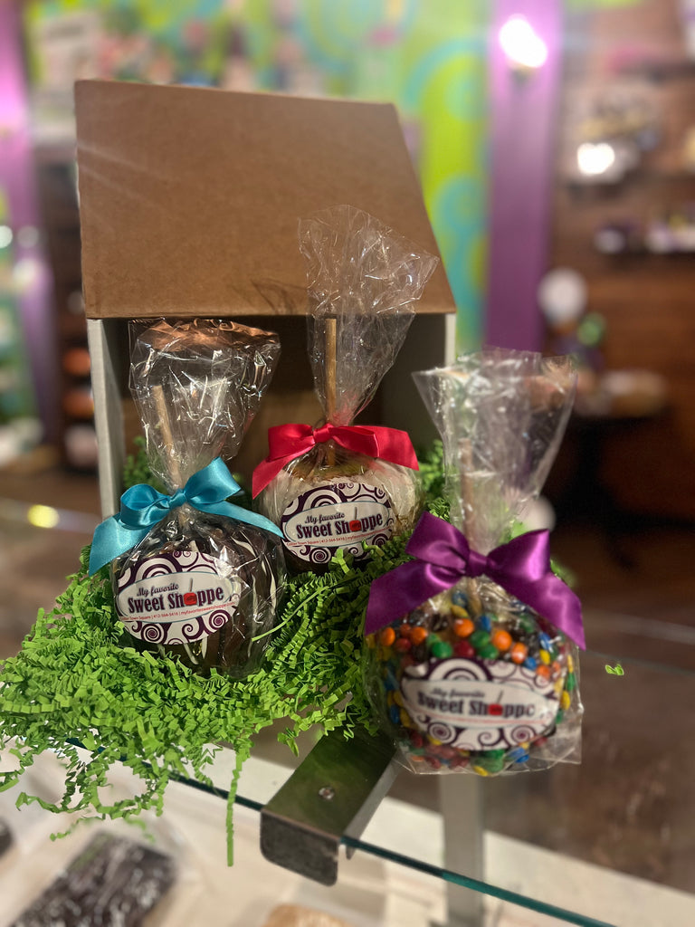Choose your favorite three Gourmet Caramel Apples to send this Fall (shipping included)! This sweet deal will be gone with the Fall season - so don’t wait!! Please put your apple selections in the “Special Instruction” box at checkout!