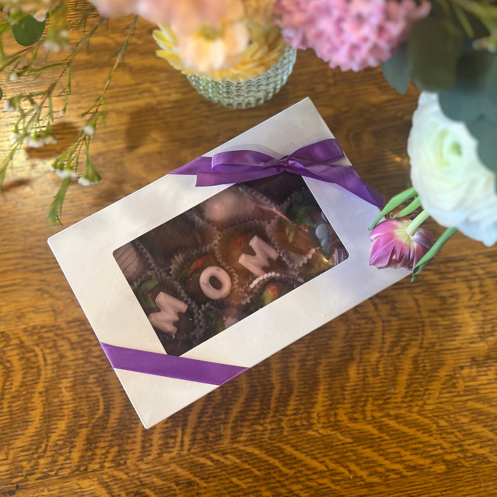 One Dozen freshly dipped strawberries are a great gift for Mom! Our chocolate covered strawberries are always dipped per order to ensure freshness!